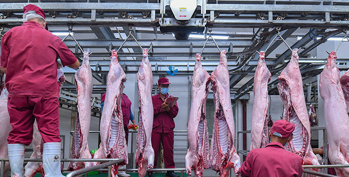 為保證生豬質(zhì)量,公司堅持從源頭抓起,同國內(nèi)多家大型牧業(yè)公司、生豬養(yǎng)殖合作社簽訂了長期戰(zhàn)略合作協(xié)議,生豬合同化供應(yīng)率達到80%...